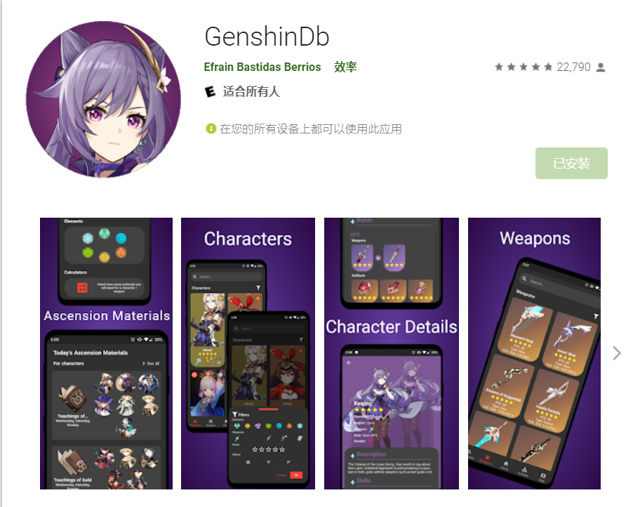 Google Play:https://play.google.com/store/apps/details?id=com.miraisoft.genshindb